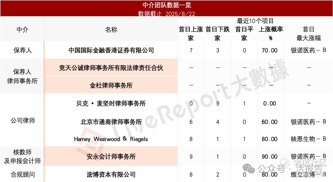 据**大数据统计,小鹅通中介团队共计8家,其中保荐人1家,近10家保荐项目数据表现较好;公司律师共计3家,综合项目数据表现一般。整体而言中介团队历史数据表现尚可。