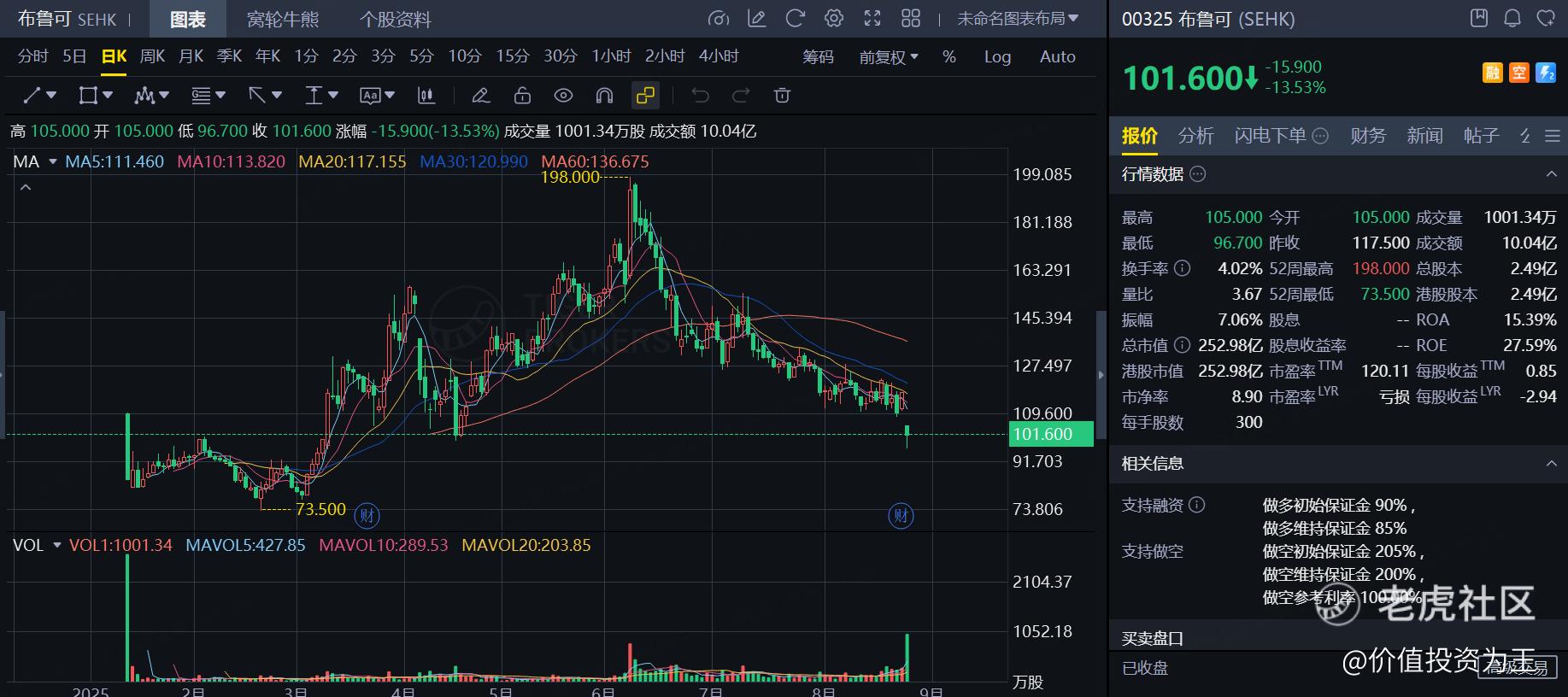 布鲁可今年1月刚上市,头顶新消费光环,上市首日大涨41%,之后一路从85元涨到198,涨幅高达133%! $布鲁可(00325)$