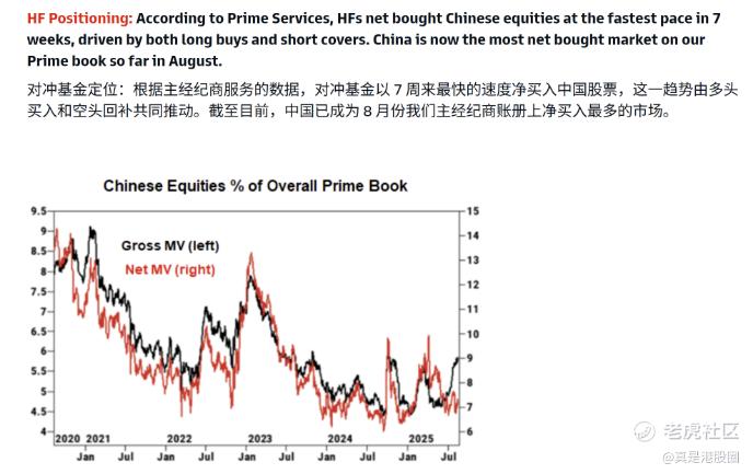 高盛:对冲基金以近7周来最快的速度净买入中国股票。截止上周,中国市场已经是高盛PB上净买入最多的市场。