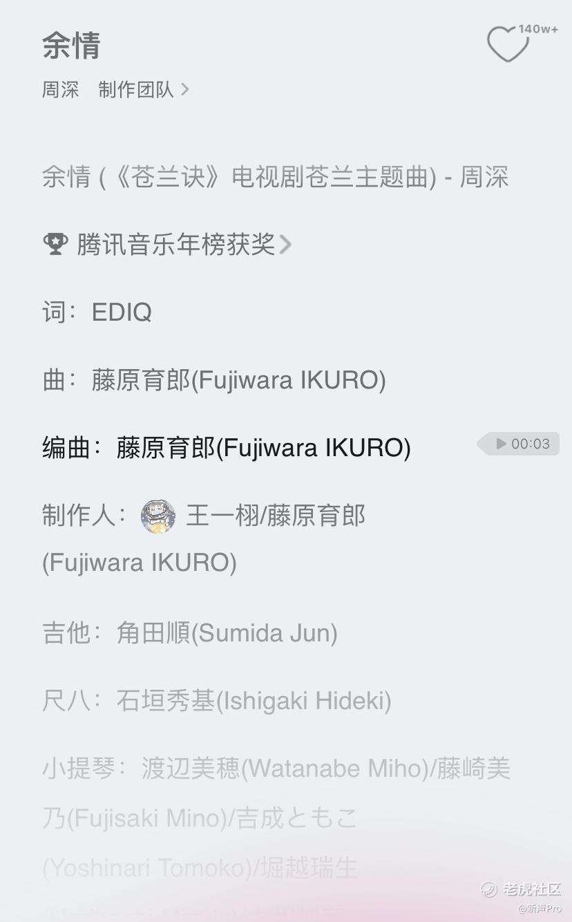 《苍兰诀》的主题曲《余情》不仅邀请有着「天籁之声」之称的周深进行演唱,整首歌曲还邀请到包括《画心》作曲人、日本殿堂级音乐家藤原育郎在内的一批日本资深音乐人进行打造,以及国际首席爱乐乐团演奏弦乐。