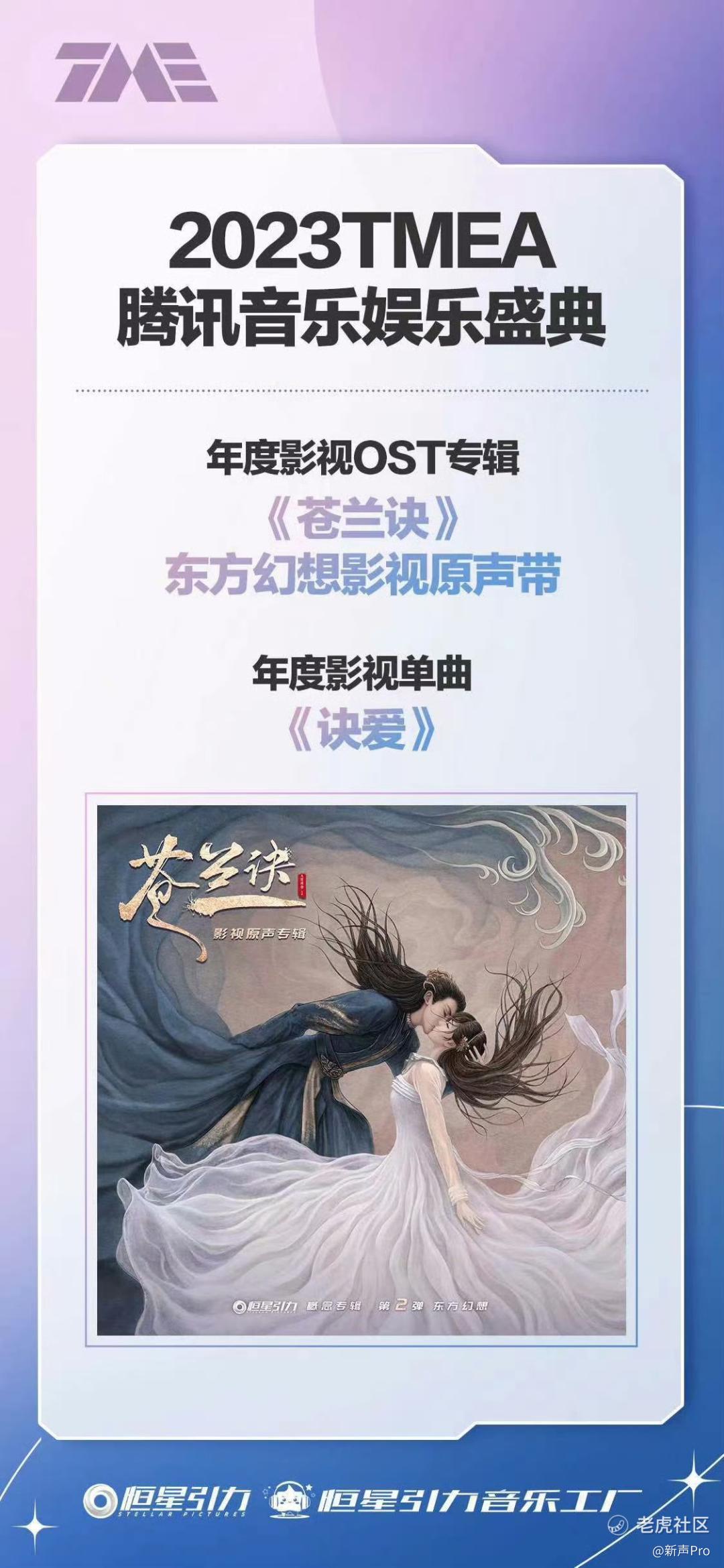作为亚洲最具影响力的流行音乐盛事之一,2019年至今,TMEA腾讯音乐娱乐盛典已成为链接全球音乐文化交流场,不仅在阵容上覆盖亚洲顶级音乐人和团体,奖项也在具备专业性的同时扮演着行业风向标。而在年度影视OST专辑的奖项上,恒星引力音乐工厂也是两度获奖的团队——此前,《苍兰诀》原声专辑也曾获得过该奖项。