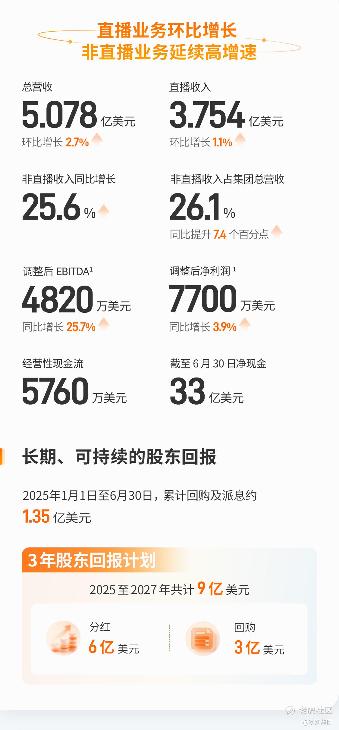 ①聚焦高质量增长策略 直播收入稳步回升