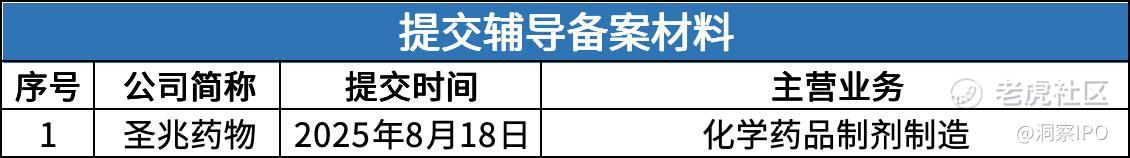 8月18日,圣兆药物向浙江证监局报送了辅导备案申请材料,辅导机构为东吴证券。