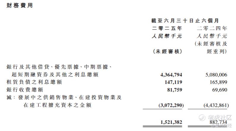 现金减少、债务增加,华润置地截至2025年6月末的净有息负债股东权益(包括少数股东权益)比率较2024年底的31.9%上升了7.3个百分点,约为39.2%。不过,得益于融资成本的降低,上半年华润置地的利息支出反而减少7.15亿元,同比降幅14.07%,但仍高达43.65亿元,占核心净利润的比重为43.65%。