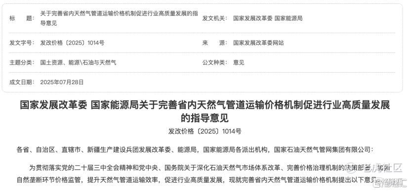 国家发改委、国家能源局发布《关于完善省内天然气管道运输价格机制,促进行业高质量发展的指导意见》,进一步完善省内各级天然气管道运输价格机制。中信证券指出,本次政策思路延续天然气改革“管住中间,放开两头”目标,持续打造中游“全国一张网”,从2021年国家管网公司核定管输价进一步深化至全国省内管网。本次政策实施标志着省级长输管网线路在全国层面价格改革迈出重要一步。