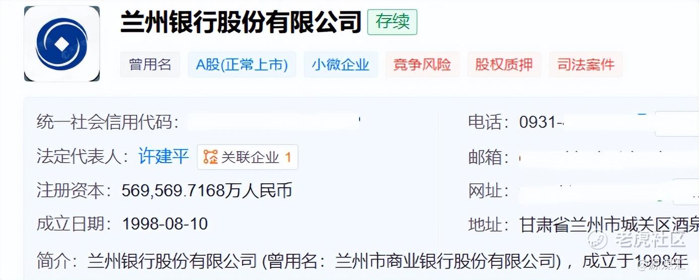 天眼查显示,兰州银行成立于1998年8月10日,注册资本约为56.96亿元,法定代表人许建平,亦是兰州银行董事长。
