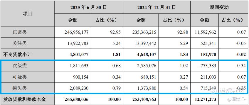 其中,次级类贷款为18.12亿元,较年初减少7.73亿元,占比下降0.34个百分点至0.68%;可疑类贷款为9亿元,较年初增加2.11亿元,占比上升0.07个百分点至0.34%;损失类贷款为20.89亿元,较年初增加7.15亿元,占比上升0.25个百分点至0.79%。