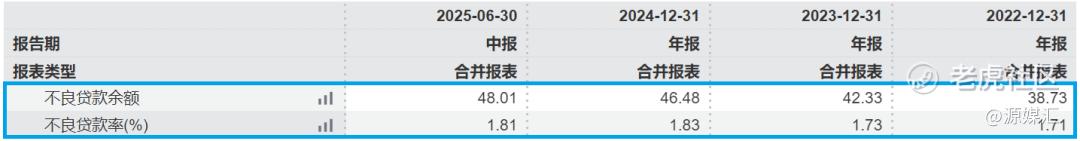 好消息是,和2025年一季度一样,兰州银行上半年的不良贷款率稳定在1.81%,较年初下降0.02个百分点,风险处置取得积极成效。但是该行同期的不良贷款余额升至48.01亿元,较年初增加1.53亿元。