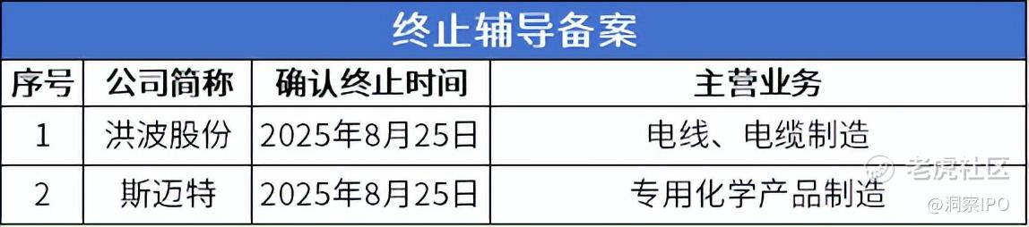 8月25日-8月31日,北交所有2家公司终止辅导备案。