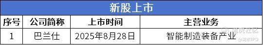 新股发行方面,8月25日-8月31日,北交所有1家公司挂牌、1家公司申购、1家通过上市委员会议、1家公司提交注册,无公司获注册批复、无公司申请获受理。