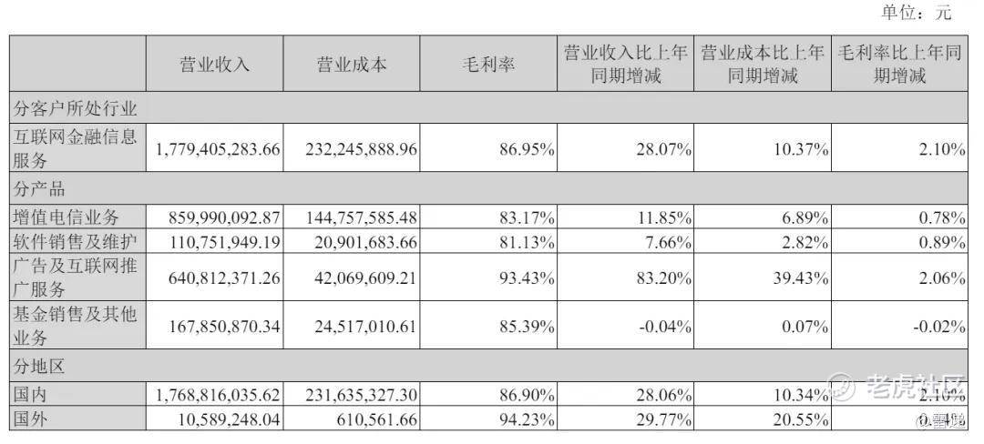 同花顺称,公司营收增长主要系资本市场活跃度增加, 广告及互联网推广服务、增值电信业务等收入增加所致。