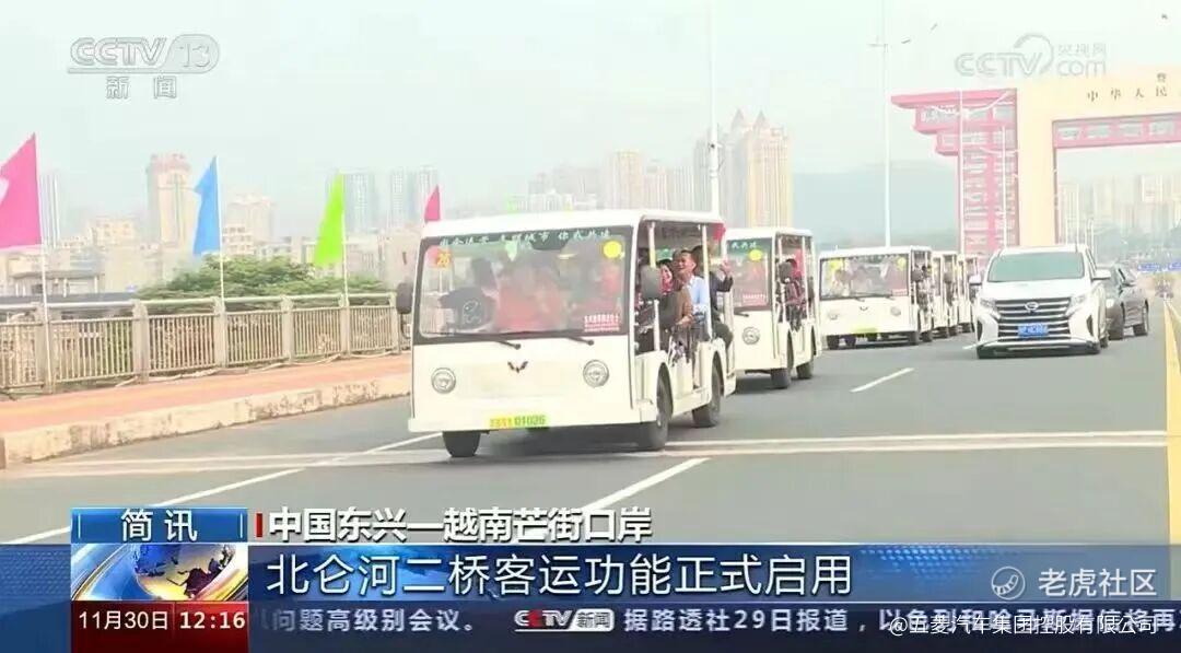 2023年11月,中国东兴—越南芒街口岸北仑河二桥客运功能启用仪式在中越北仑河二桥举行。五菱观光车作为中方摆渡车与越方摆渡车共同搭乘旅客经北仑河二桥分管线出境。