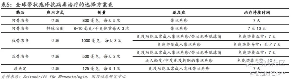 据智通财经APP了解,目前带状疱疹的治疗主要以抗病毒及镇痛药物为主,尚无针对带状疱疹的特效药。全球带状疱疹抗病毒治疗常用药物为阿昔洛韦、伐昔洛韦、泛昔洛韦及溴伏定,其中首选药为阿昔洛韦。这些药物的治疗持续时间较长,需连用7-10日,患者仍需忍受较长时间的痛苦,并且用药后可能无法完全消除并发症。接种疫苗依然是最有效可行的预防手段。