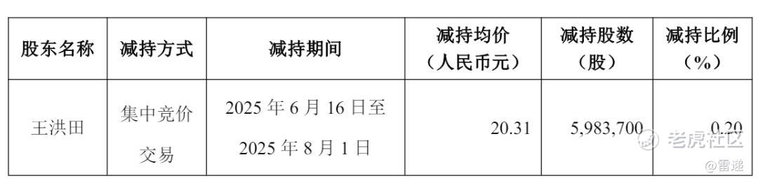 其中,王洪田在2025年6月16日到2025年8月1日通过集中竞价交易放松减持5,983,700股,减持20.31元,套现1.22亿元。