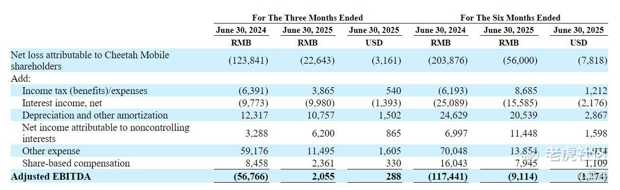 猎豹移动2025年第二季度Adjusted EBITDA为206万元,上年同期为-5677万元。