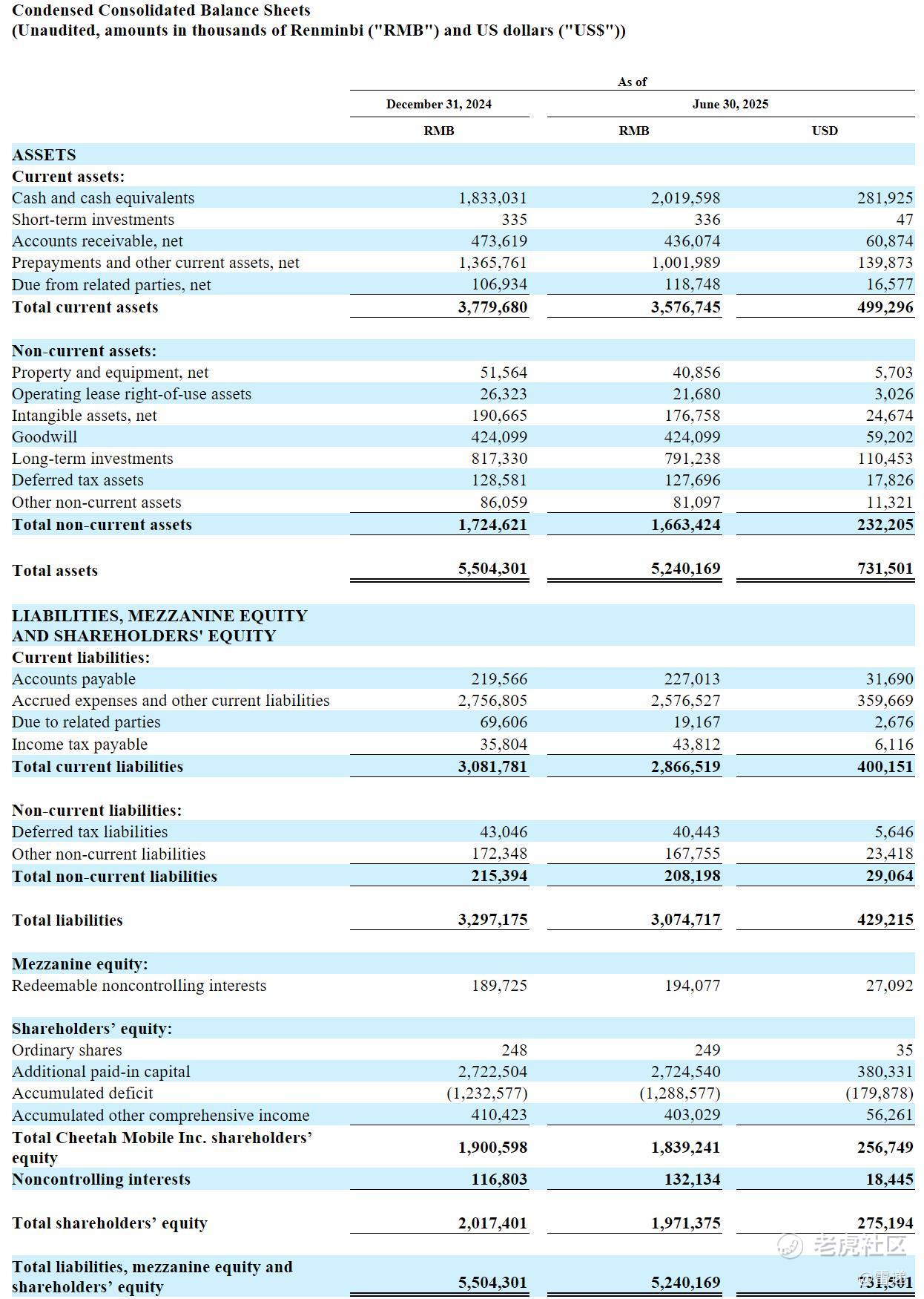 截至2025年6月30日,猎豹移动总资产为52.4亿元(约7.32亿美元),现有流动资产为35.77亿元(约5亿美元),现有非流动资产为16.63亿元(约2.32亿美元)。