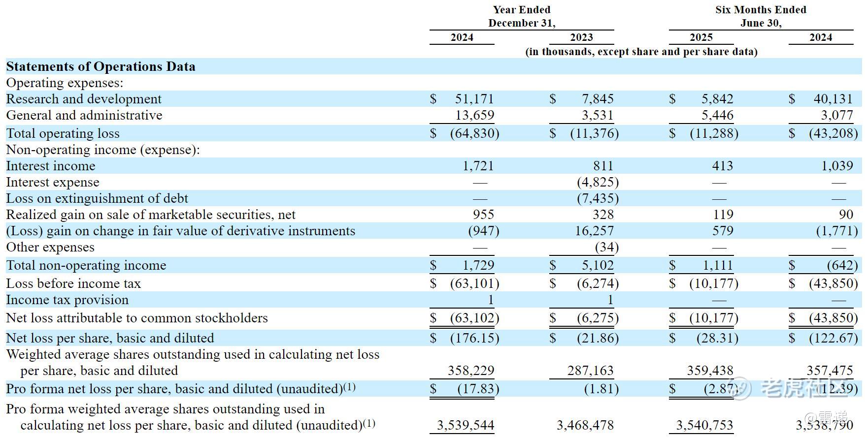 LB Pharmaceuticals在2025年上半年运营亏损为1129万美元,上年同期的运营亏损为4321万美元;归属于普通股股东的净亏损为1018万美元,上年同期的归属于普通股股东的净亏损为4385万美元。