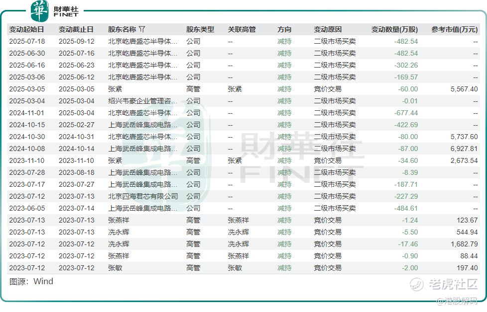 Wind数据显示,自2022年10月以来,重要股东交易记录中未见任何增持,反而出现多笔减持,涉及绍兴伟豪、北京屹唐盛芯、上海武岳峰等机构,以及张紧、冼永辉、张燕祥等公司高管。