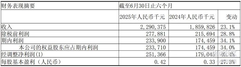 根据绿茶集团2025年中期业绩公告,公司期内实现营收22.90亿元,同比增长23.1%;期内利润2.34亿元,同比增幅达34.1%;归母净利润2.34亿元,同比增长34.0%,核心盈利指标均实现两位数高增长。