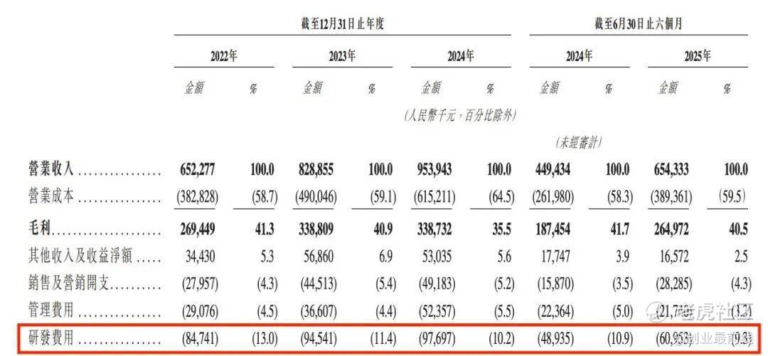 对比同行大族激光,该公司从2022年到2025年上半年的研发投入占比分别为10.7%、12.5%、12.2%及11.7%,报告期内并未低于过10%。