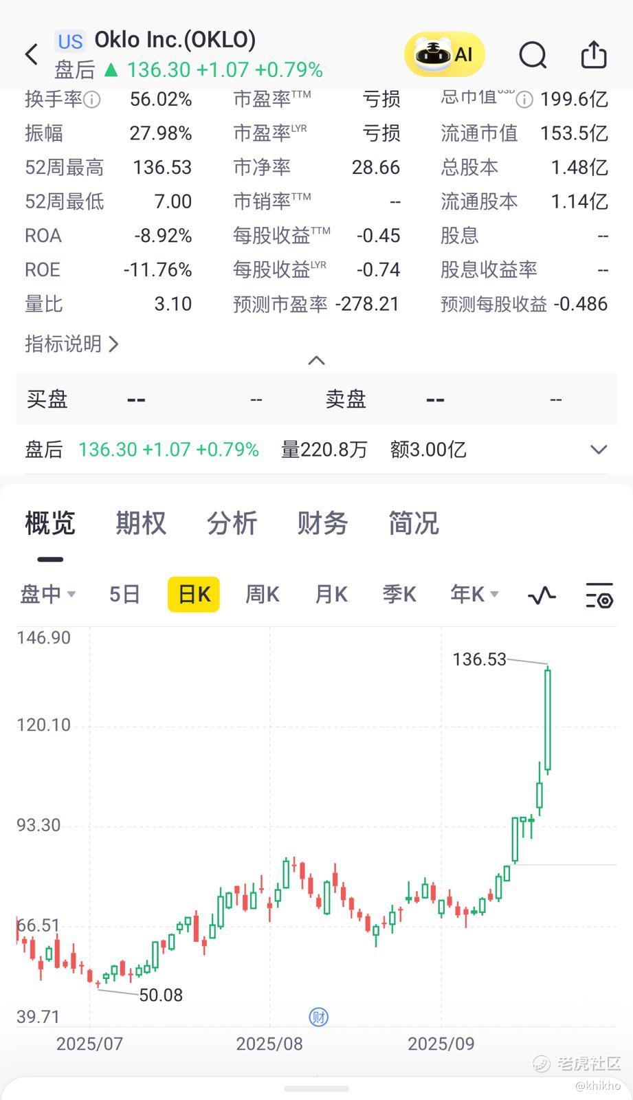如果OKLO跌到100美元,我以100美元买入,比直接买便宜,还多赚权利金。