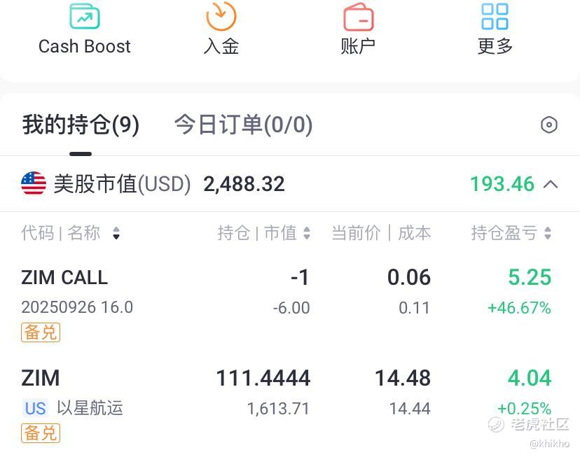 我持有100股 $以星航运(ZIM)$ ,当前股价14.5美元左右,我卖出16美元的Covered Call。