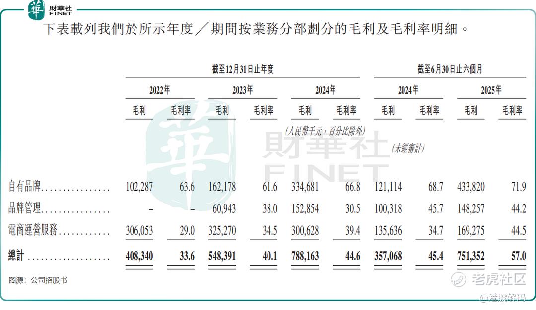 自2022年起,若羽臣自有品牌毛利率持续走俏,2025年上半年毛利率更是突破70%,至71.9%,而品牌管理和电商运营服务亦有不同程度提升,上半年毛利率均在44%。