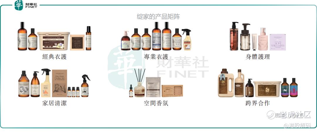 以若羽臣自主品牌的拳头产品绽家为例,该品牌的产品包括了洗衣液、车载香薰、除菌液和地板清洁剂等,在“香氛+高效清洁”的功能基础上,若羽臣强化了“悦己与生活美学”的心智建设,兼具了功能与情感。