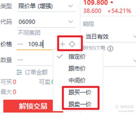 第六,掌握下单技巧。港股暗盘不支持市价单,但可点击下单界面的“瞄准镜”图标,分别选择“跟买一价”或“跟卖一价”以快速跟进市场最优价格;