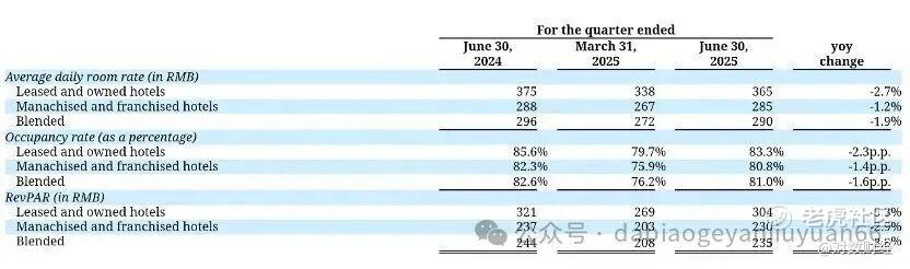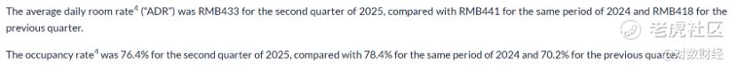 华住的表现也未见轻松:同期RevPAR为235元,同比下降3.8%;ADR为290元,同比下降1.9%;入住率81%,同比下降1.6个百分点。
