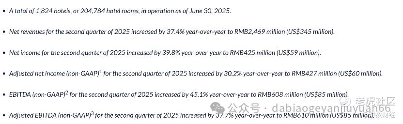 相比之下,华住依旧是“巨无霸”:酒店总数超过1.2万家,仅2025年二季度就净新增355家。但其二季度营收同比增速仅4.5%,远低于亚朵的八倍增长幅度。