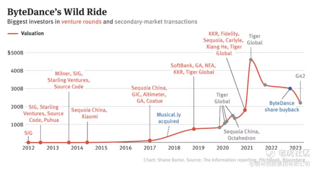 图4:字节跳动的风投投资者和二级市场交易,图片来源:财报、宣传书、彭博