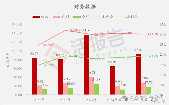 收入分别约为人民币83.73亿、80.95亿、135.80亿、65.01亿、92.41亿,2025年前6月同比+42.16%;