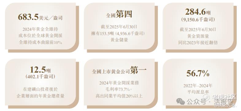 公司的黄金产量在中国黄金生产商中排名第六,黄金储量在中国黄金生产商中排名第四。截至2025年6月30日,公司的黄金资源量达到284.6吨(9,150.6千盎司),对比截至2023年12月31日的146.7吨(4,715.3千盎司)接近实现了翻倍。