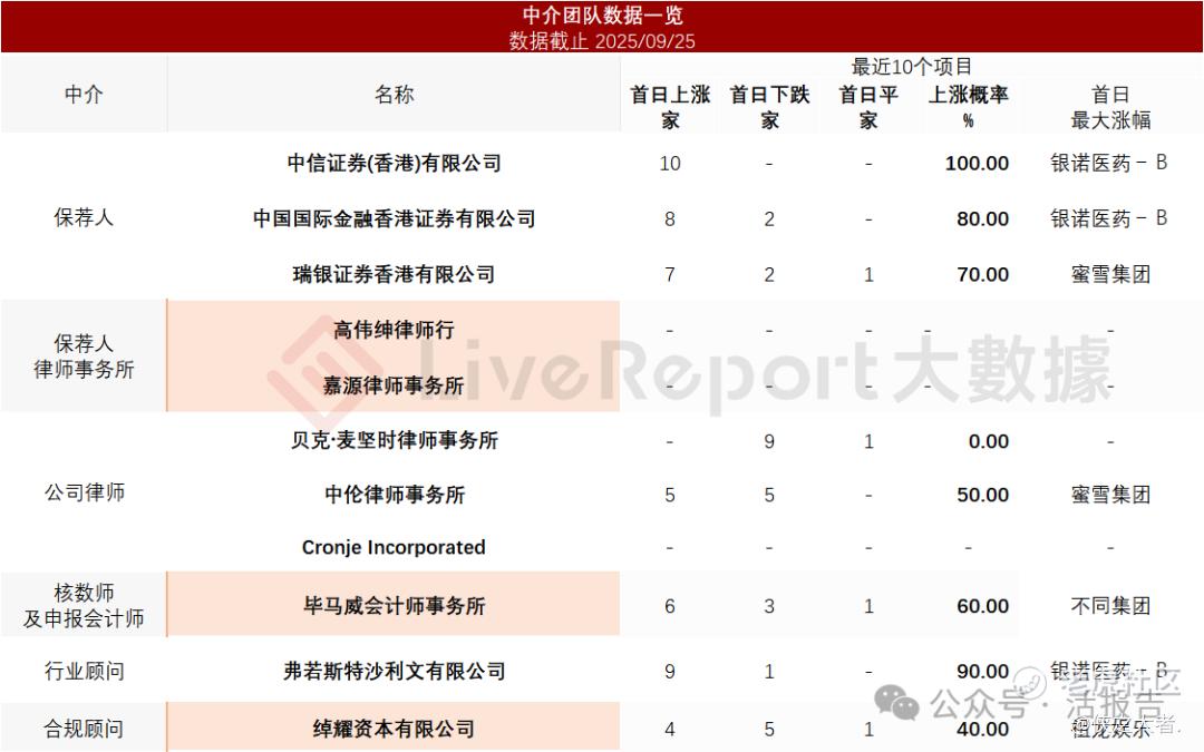 据**大数据统计,山金国际中介团队共计11家,其中保荐人3家,近10家保荐项目数据表现优秀;公司律师共计3家,综合项目数据整体差强人意。整体而言中介团队历史数据表现一般。