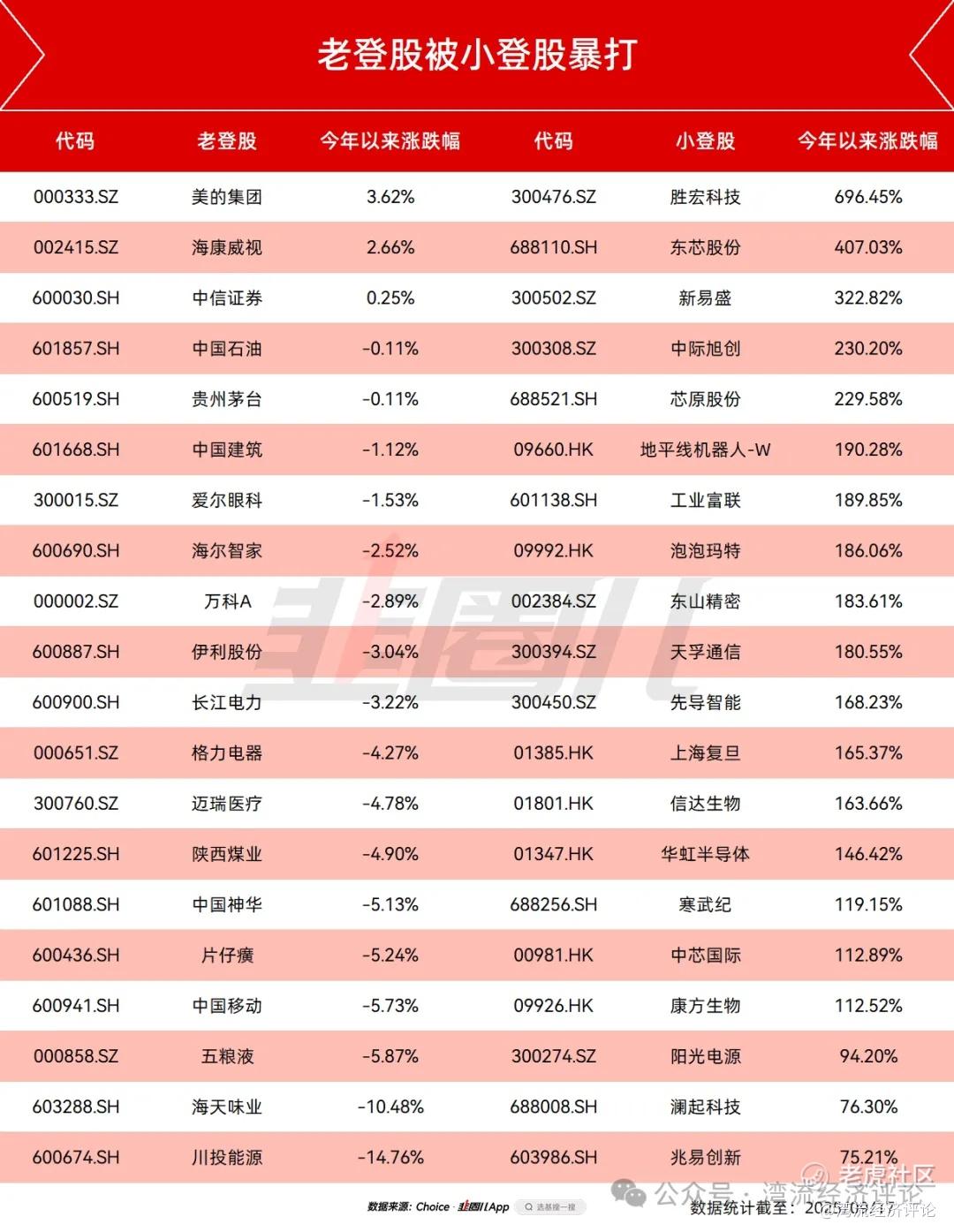 昔日意气风发的老登股,为何会惨败?以往默默无名的小登股,为什么能暴涨近700%?这里面有些门道: