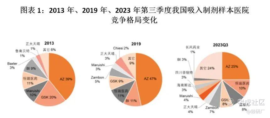 是吸入制剂市场的龙头企业,拥有较高的市场份额和显著的龙头效应。阿斯利康也是布地奈德混悬液产品的原研厂商,在国内市场的销售拥有绝对的优势,2022年上半年占到中国总销售额的54.5%。不过,随着国产产品陆续上市,以及集采的带动,该行业寡头垄断格局被打破。平安证券的报告显示,截至2023年Q3,阿斯利康的市占率下降至25%。