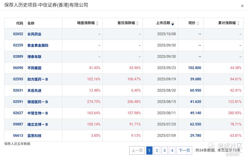 中信证券历史上作为保荐人参与了31个项目,其中暗盘和首日都有27家公司上涨,3家公司下跌,1家公司平盘,破发率仅9.68%,遥遥领先行业平均水平。今年以来参与的15个项目中,仅有2个项目破发,仅3个项目录得累计跌值,说明中信保荐的项目综合素质都很不错,自身也拥有优秀的护盘能力,整体保荐胜率极高。