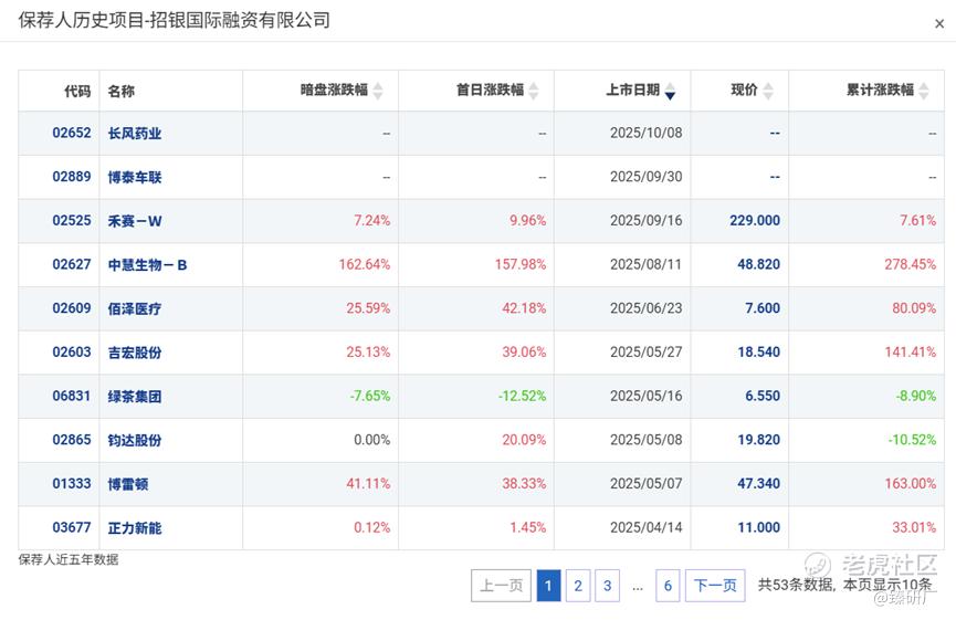 招银国际历史上作为保荐人参与了51个项目,其中暗盘有25家公司上涨,18家公司下跌,8家公司平盘,破发率35.29%。首日有31家公司上涨,12家公司下跌,8家公司平盘,破发率23.53%,整体胜率一般。今年以来参与了9个IPO项目,仅1个项目破发,并且还参与了中慧生物、吉宏股份、博雷顿等热点新股的保荐,项目的综合素质和保荐能力较过往均有明显提升。