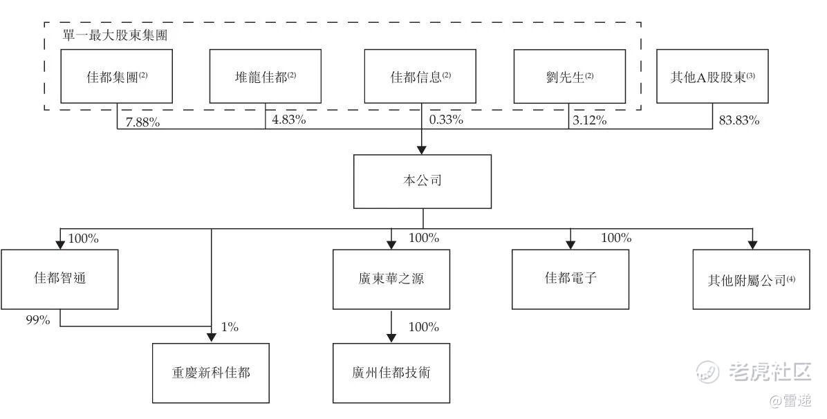 截至2025年6月30日,佳都集团有限公司持股为7.88%,堆龙佳都科技有限公司持股4.83%,广州市番禺通信管道建设投资有限公司持股3.55%,刘伟持股3.12%,知识城(广州)投资集团有限公司持股为3.05%;