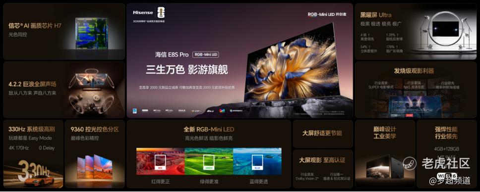 从定价大几万的UX系列,到1万多的“影像旗舰”U7S Pro,再到面向游戏用户的“影游旗舰”E8S Pro,罗超Pro认为,海信RGB-Mini LED电视矩阵“三驾马车”已成型,而这体现出了海信将RGB-Mini LED架构“平台化”的思路。