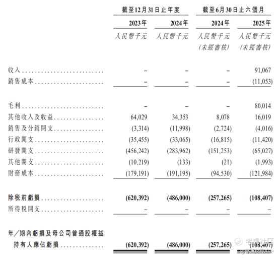 从财务表现来看,由于尚未有产品进入商业化阶段,先为达生物目前仍处于亏损状态。2023年、2024年及2025年上半年,公司营业收入分别为0元、0元及9106.7万元;净亏损则分别为6.20亿元、4.86亿元和1.08亿元。值得注意的是,同期研发支出分别为4.56亿元、2.84亿元和6500万元,占亏损总额的比例分别为73.55%、58.44%和60.19%,显示出公司持续将资金重点投入于研发活动。截至2025年6月30日,公司现金及现金等价物为7.8亿元,为其后续研发及产品商业化提供了资金支持。