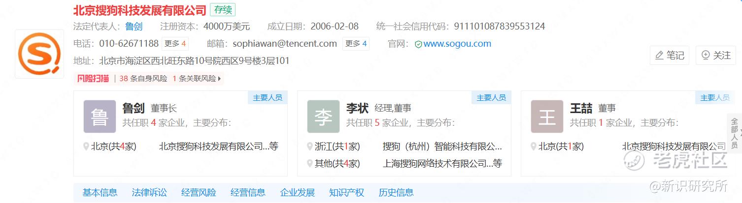 搜狗母公司工商信息更新:叶骏退出董事长岗位,鲁剑同时接任法定代表人