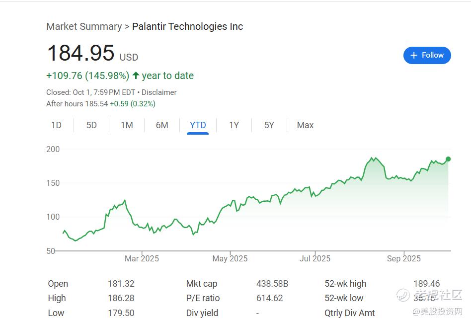 在 2025 年这波美股大牛市中,最热的赛道无疑还是人工智能。微软、英伟达、谷歌等巨头固然是投资者眼中的“宇宙核心资产”,但在这些巨无霸的阴影下,有一家市值并不算顶尖的公司,正在悄悄开辟一条属于自己的道路。它就是 Palantir ( $Palantir Technologies Inc.(PLTR)$ )。