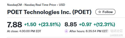 一周前的10月1日我们全新布局的一只 不为人知的 AI小盘公司, 代号 $POET Technologies Inc(POET)$ ,价格5.7美元。