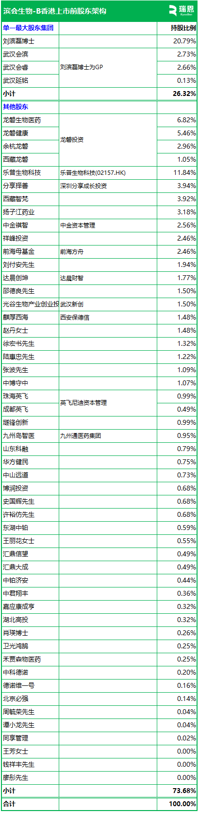 招股书显示,滨会生物在香港上市前的股东架构中,