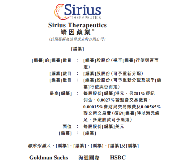 靖因药业Sirius-B,递交招股书,拟赴香港上市 | 18A未盈利生物科技公司.香港IPO