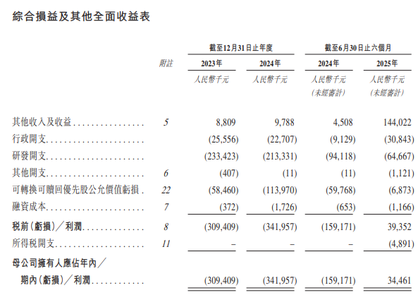 招股书显示,在过去的2023年、2024年和2025年前六个月,靖因药业的营业收入均为0元,相应的研发开支分别为人民币2.33亿、2.13亿和0.65亿,相应的净亏损分别为人民币3.09亿、3.42亿和0.34亿。