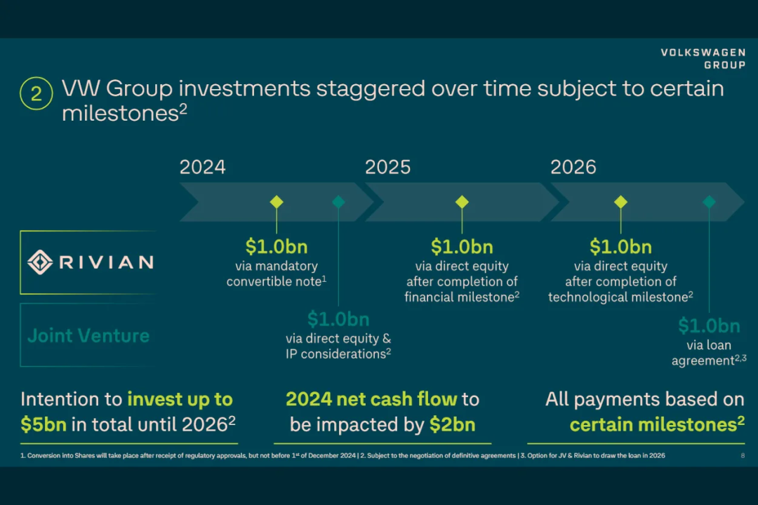 ◎ 在北美,Rivian成为大众电动化与软件化的新支撑点。双方的合资企业员工已超过1300人,正共同开发下一代电动车架构,为大众的SUV与皮卡提供SDV平台。