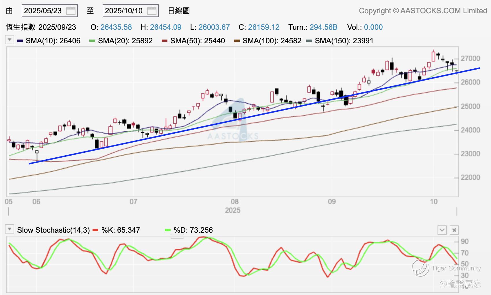 「咁指数向下回返落去日线图嘅『上升轨』系咪又完成一个浪啦?」系呀,前题要「上升轨」接得住条指数先至有得再博多一个新浪出现,以保持一浪高于一浪嘅走势。